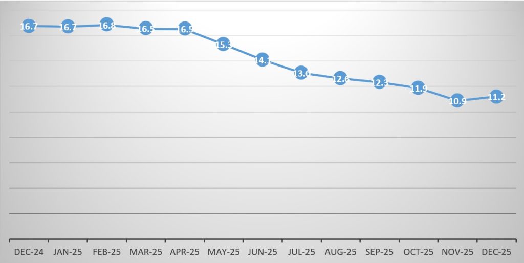 Zambia’s annual inflation climbed to 11.2% in December 2025, driven by rising non-food prices, with analysts warning households may continue to feel cost-of-living pressures.