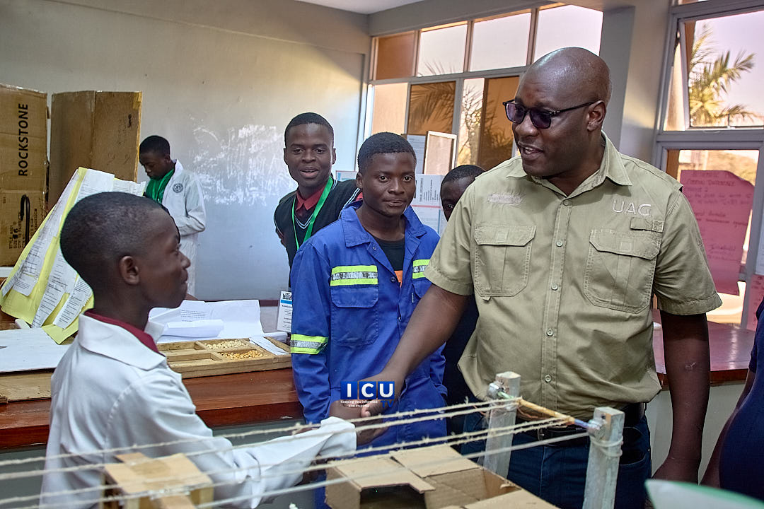 Mr. Moffat Nsofwa praises pupils from Kawambwa Provincial STEM School (formerly Kawambwa Boys Technical Secondary School) for their outstanding display of innovations at the National Junior Engineers, Technicians and Scientists (JETS) Fair.